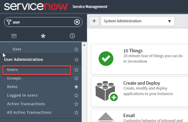 The next step is to create an user called mid_server to be able to work with the ServiceNow instance. The following are the steps to create a new user, mid_server , in the ServiceNow instance: