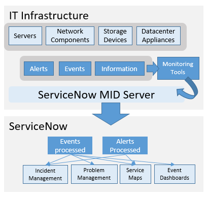 Events, alerts, and information are generated from IT infrastructure continuously, these generated events needs to be addressed appropriately and acted upon. There are several event monitoring tools available in the market to monitor the infrastructure. Event monitoring tools are isolated to the respective tools to handle and take appropriate remediation actions, but these tools are not related to the ServiceNow to be able to: