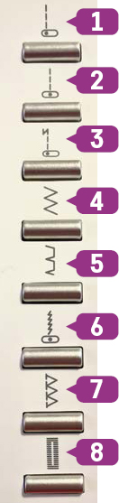 These buttons allow you to select commonly used stitches without working your way through the menu. The direct stitch selection buttons allow you to choose (top to bottom):