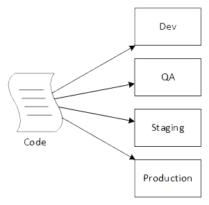 Each codebase should be tracked in a version control system and can be used for multiple deployments of the application. For example, a single codebase could be deployed to the development, QA, staging, and production environments: