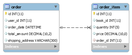 This schema contains two tables, order and order_item. The relationship between them is as follows: