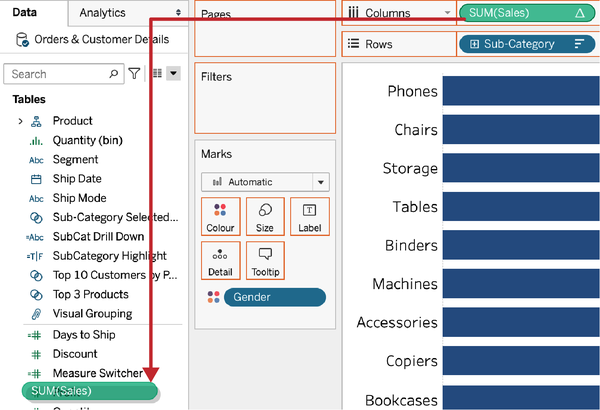 Jede Quick Table Calculation kann unter gespeichert werden, so dass du die zugrunde liegende Tabellenberechnung sehen kannst. Schau dir zum Beispiel Rezept 3.5 zur Summe der Verkäufe an: