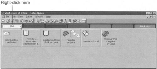Adding names to your workspace tabs helps organize your workspace. In addition to naming tabs, you can create additional tabbed pages. You can select colors for tabs and move databases from one tabbed page to another by dragging the database to a different tabbed page.