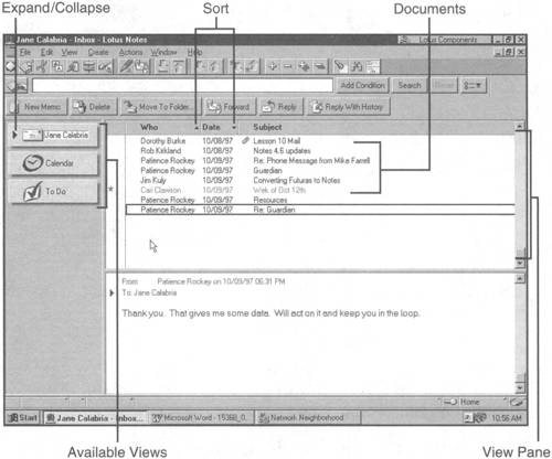 The Status bar, located at the bottom of the Notes window, displays messages, icons, and other information you use as you work in Notes. The Status bar is divided into sections, some of which display messages, and others that lead to a pop-up box or pop-up menu. When a pop-up menu appears, you can select from the menu to make changes in your document or location. Figure 4.4 shows the Status bar with the recent messages displayed in a pop-up box.