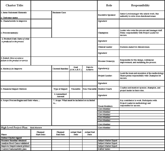 Content preview from Utilizing the 3Ms of Process ImprovementAppendix 4: Charter Template