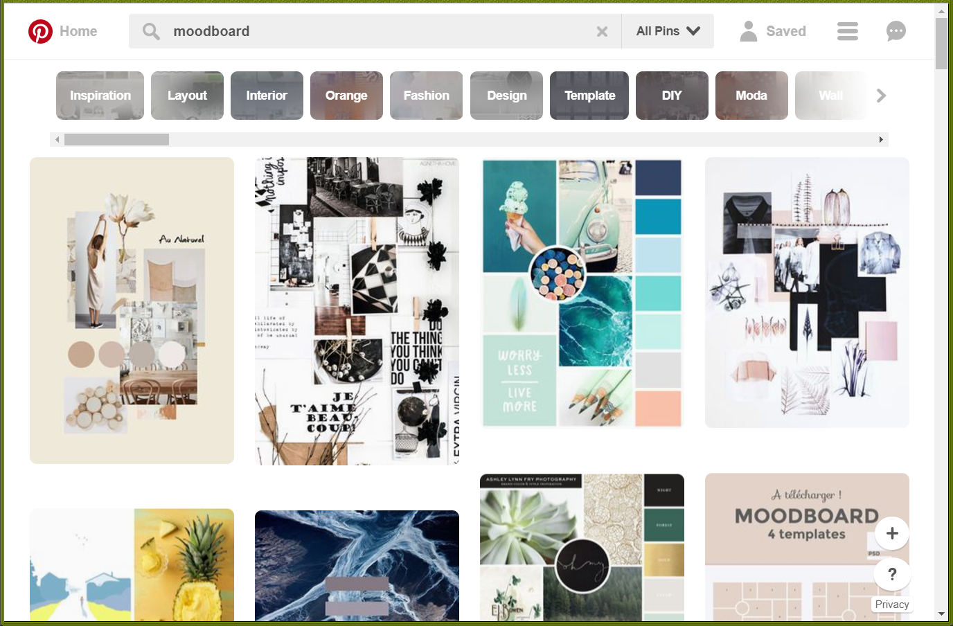 Pinterest is a popular site for visually collecting and exploring ideas, which uses the moodboard form. Users post or pin items with a common theme, to collect and share with others.