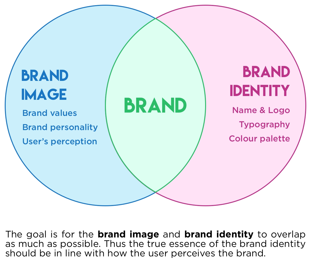 Traditional branding is rooted in the perfect balance between brand identity and brand image. The brand identity is the visible visual elements of the brand, such as the brand's name and logo, typography, colors, and design elements that distinguish the brand from other brands in the user's mind, while the brand image is a combination of the perception and experience the user has with the brand, as well as how they view the brand's personality and values.