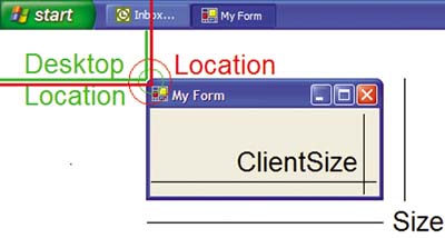 PLATE 4 (FIGURE 2.3): The DesktopLocation, Location, ClientSize, and Size Properties