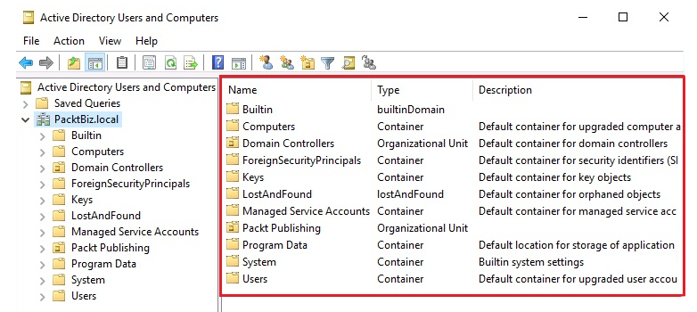 After Promoting the server to a domain controller, several default containers are created (see Figure 4.20). These default containers are unique because you cannot rename, delete, create new ones, or associate Group Policy Objects (GPO) with these containers. The default containers in Windows Server 2016 are shown in Figure 4.20: