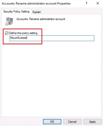 - Policy: Accounts: Rename administrator account