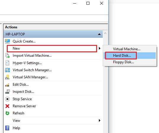 To create a virtual hard disk (VHD) with Hyper-V Manager in Windows Server 2016, complete the following steps: