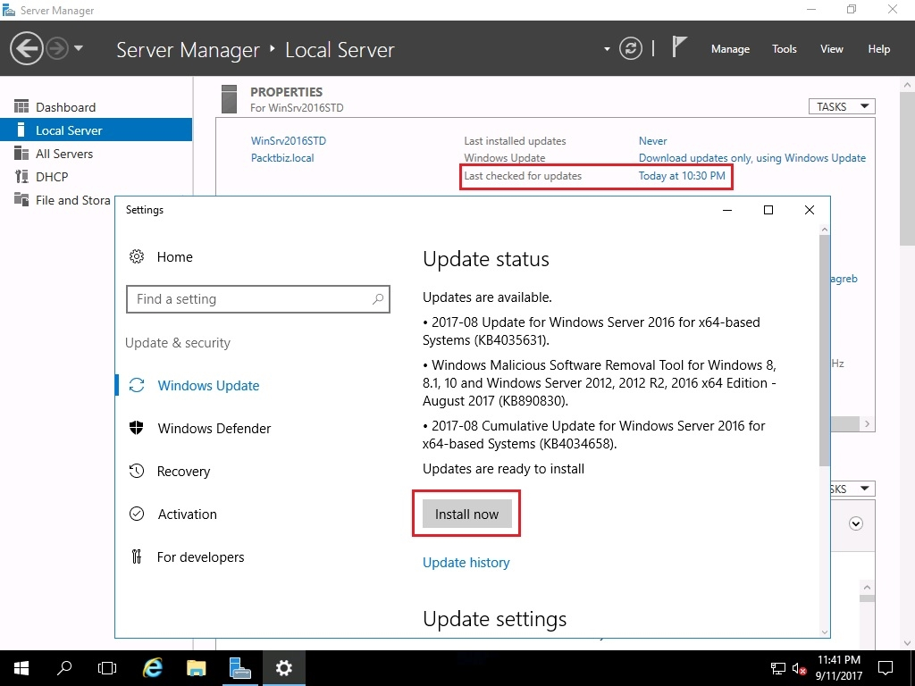 - Installing updates might take some time! When the installation is done, often you will be asked to Restart the server for the updates to take place.