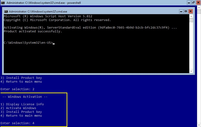 - Shortly, your Windows Server 2016 will activate. Enter Exit to close the Activation window.