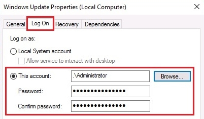 - In the Properties window, click the Log On tab, as shown in Figure 3.20.