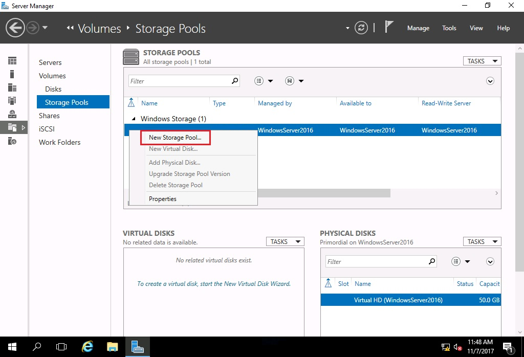Storage Spaces Direct (S2D) is a new feature in Windows Server 2016 that enables you to group disks into storage pools (see Figure 8.6), thus creating software-defined storage called storage spaces.