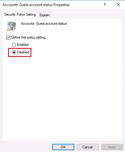 - Policy: Disable the Guest Account
