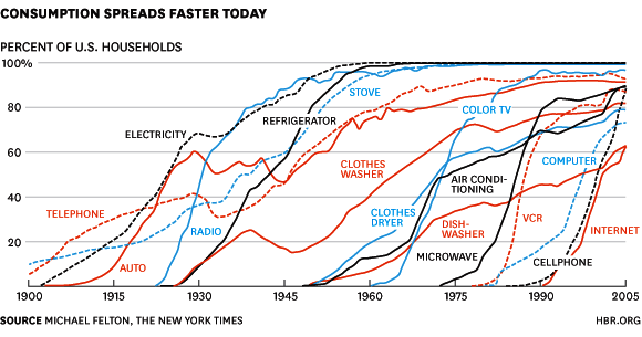 图 10-1. 不同技术的长期采用率